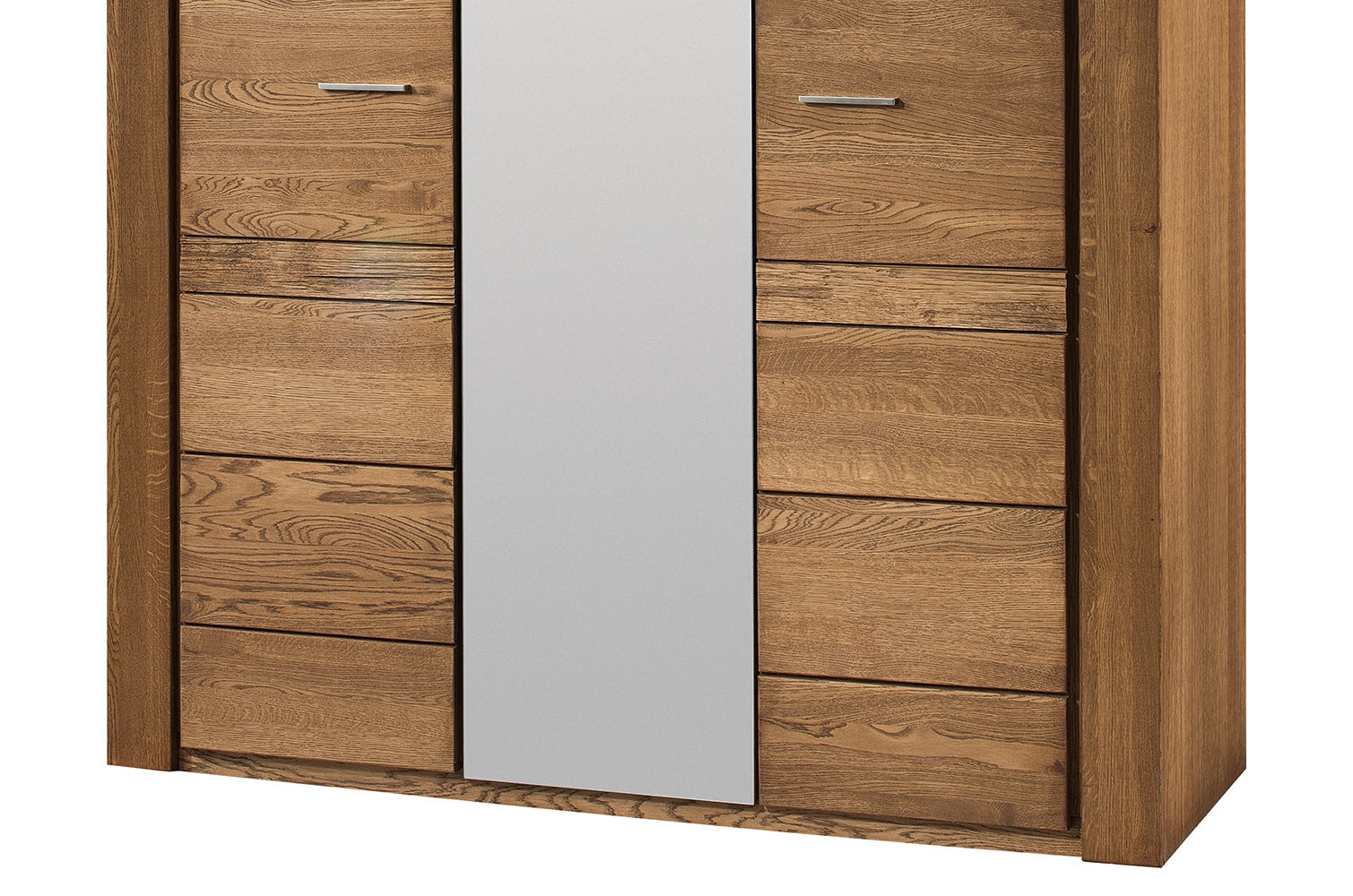 La garde-robe Velours 73 de trois portes, dont celle du centre avec un miroir en pied avec L'armoire Velvet 73 à trois portes, dont la porte centrale est munie d'un miroir en pied, donne à votre chambre à coucher une touche moderne et élégante avec la chaleur du bois rustique de chêne huilé. Du bois massif et une grande capacité pour vos vêtements et accessoires. Vous pouvez la combiner avec des meubles de la même collection Velvet.