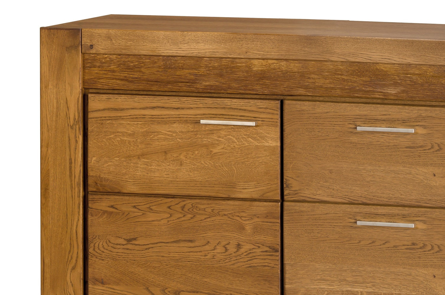 Buffet à tiroirs Velours 47 en chêne massif apportera une élégance nordique à votre salon ou à votre chambre à coucher. L'association du chêne et des poignées en acier brossé apporte la modernité que vous recherchez dans votre intérieur. Ses trois portes offrent un grand espace de rangement. Vous pouvez également la combiner avec d'autres meubles de la collection Velvet.